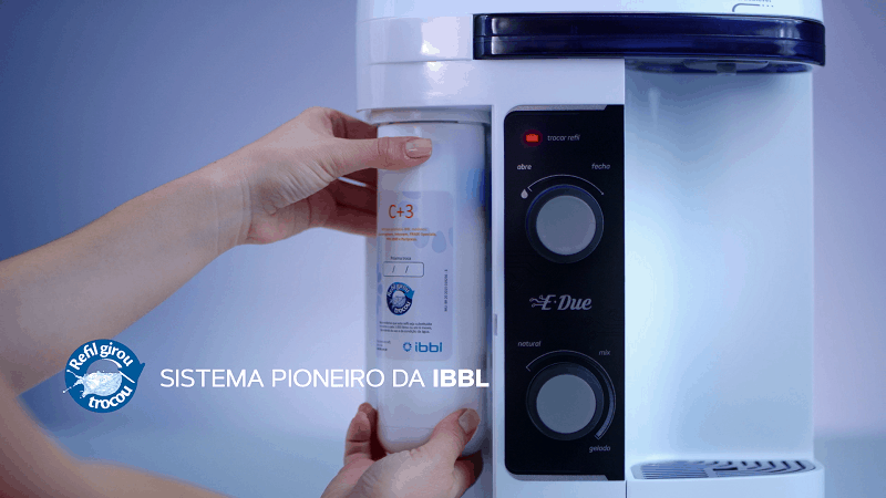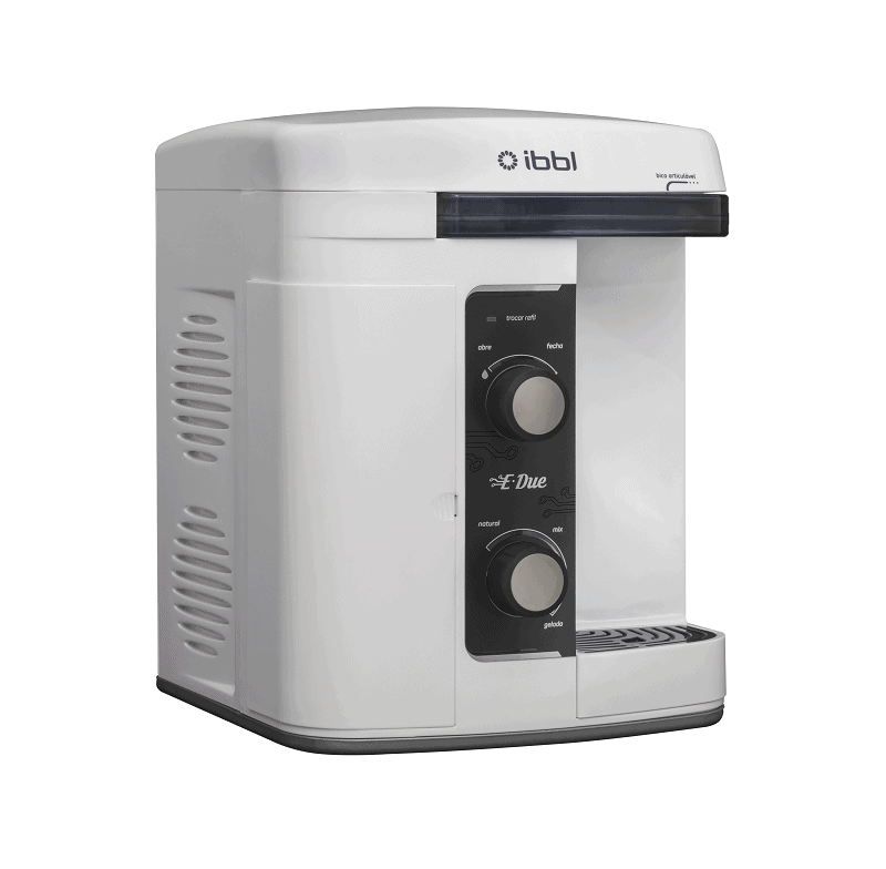 Os purificadores de placa eletrônica da linha E-due têm bica articulável, que permite encher recipientes de diversos tamanhos, botão misturador, para regulagem da temperatura, e LED que avisa o usuário a hora de trocar o refil. A troca é frontal, não é preciso mover o purificador e nem desligar o registro de água. É pelo sistema “Girou Trocou”. Aceita diversos tipos de refis da linha IBBL, informa a empresa. É leve e tem pés antiderrapantes.